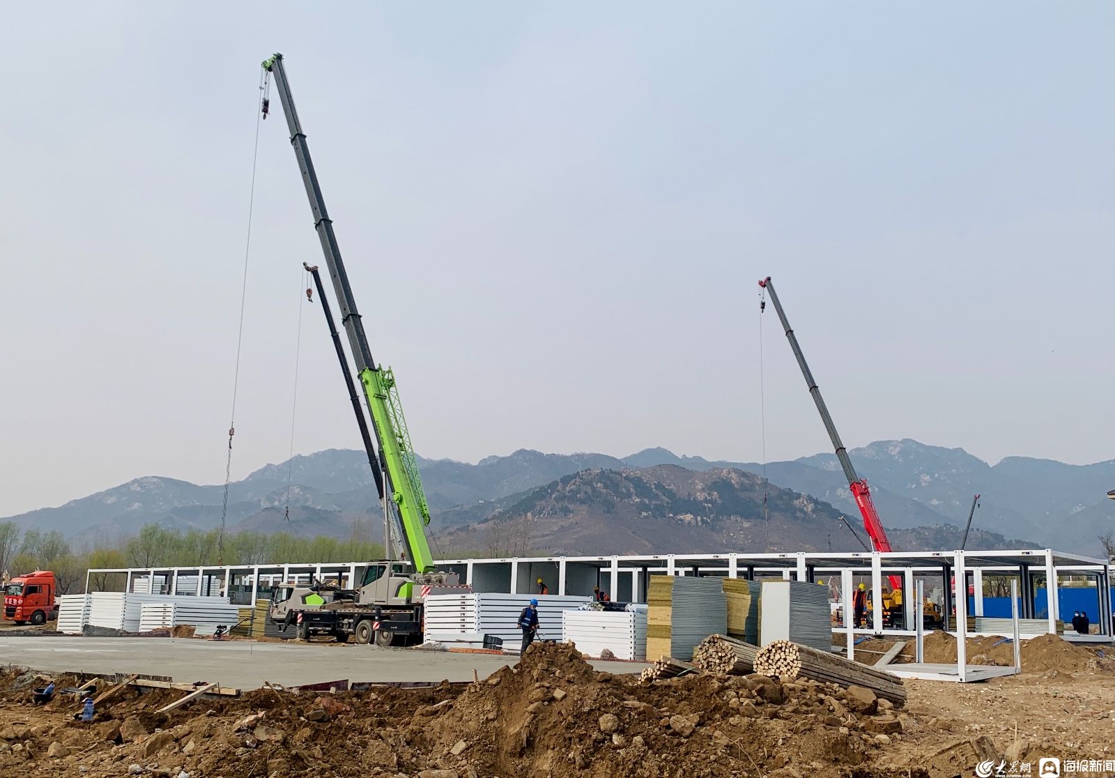 3月22日上午,大众网·海报新闻记者来到位于蒙阴县桃墟镇的集中隔离点。近300人的施工人员和50多台大型机械正在同时施工,与时间赛跑,加紧加快1000套安全隔离房的建设。