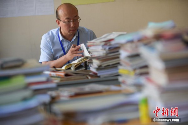 5月21日,山西太原,“高考哥”王世卿备战他的第9次高考。王世卿今年40岁,是山西一民营中学校长。他曾连续8年参加高考,今年他再次报名,被网友称为“高考哥”。中新社记者 武俊杰 摄