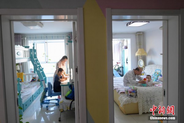 5月21日,山西太原,“高考哥”王世卿已是两个孩子的父亲,下班回家先要照看一会儿小女儿然后再去复习备考。中新社记者 武俊杰 摄