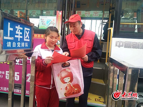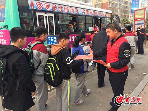 大众网临沂3月27日讯(记者 王艳彩 通讯员 韩瑞君)今年3月26日是第23个“全国中小学安全教育日”,为切实做好学生乘车安全的保护工作,促进学生平安健康成长,3月26日,临沂公交集团一公司“雷锋志愿服务队”走进河东开发区第三十二中学,开展“平安校园 文明乘车”的宣传和教育活动。