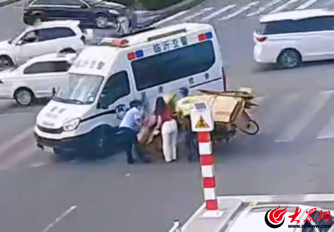 9月17日傍晚,山东省临沂市莒南县一位70多岁的拾荒大娘三轮车上的废纸板在泰山路与渤海路交会路口突然散落,这时,恰逢警车路过,车上迅速下来两位交警帮助捡拾滑落的废旧纸板,此时,车流中又匆忙跑来一位大姐加入帮助队伍,散落的废旧纸板很快被原数放回三轮车上。