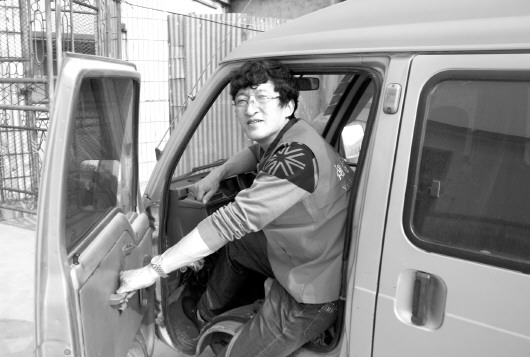 常年参加义工活动,原本较新的面包车变得十分破旧。 本报记者 钟建军 摄