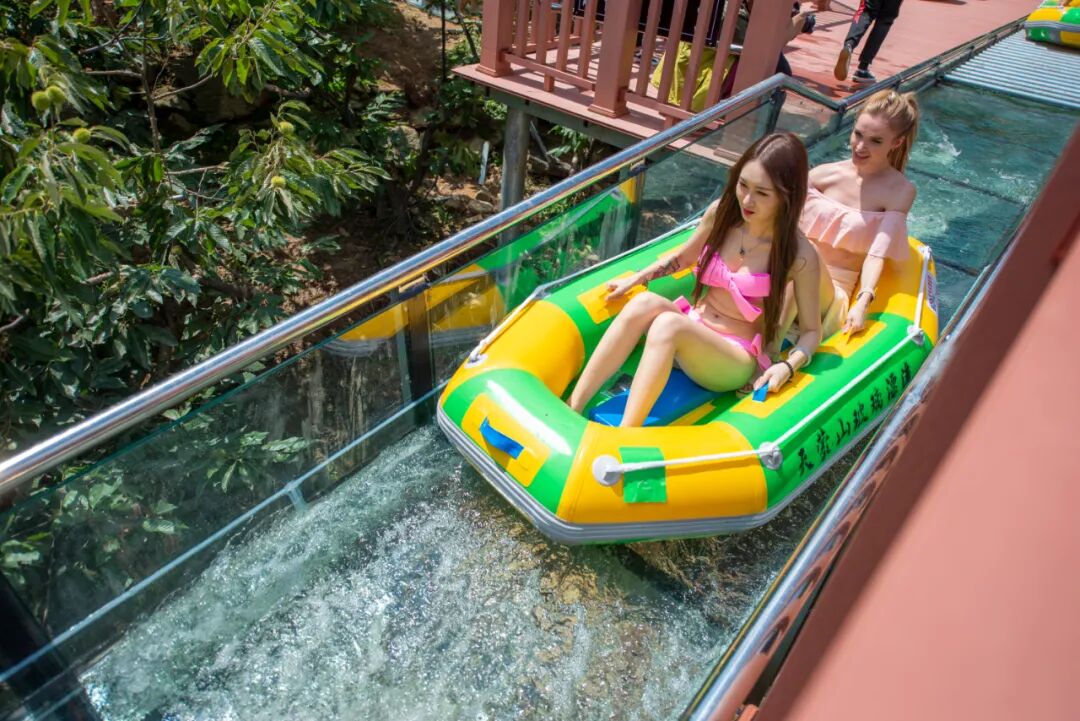 着比基尼泳装的美女还可以免费游景区玩漂流