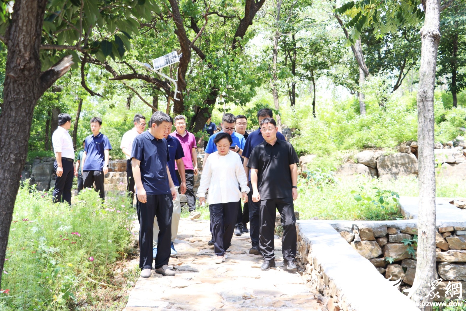 从红色课堂到实践现场,初心使命在实干中升华。陈金秀一行深入王庄同心街、双山共富产业园、取舍・远山民宿等地,实地察看乡村振兴项目建设。在山东管理学院派驻夏蔚镇第一书记负责的民宿项目现场,大家细致询问运营管理情况,就“红色文旅融合发展”“提升服务品质”等提出指导性建议,强调要以“功成不必在我”的境界和“功成必定有我”的担当,严把工程质量关、安全关,让项目成为带动老区发展的“新引擎”。